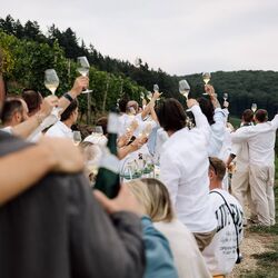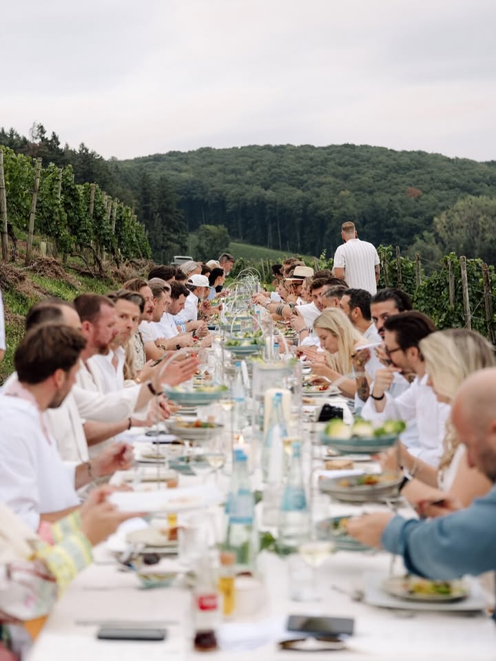 Last month, we celebrated summer together with our friends from @byndsc – the highlight was our magical dinner among the vines. Surrounded by good company, we shared our finest wines, unforgettable flavors, and the beauty of the vineyard at sunset.