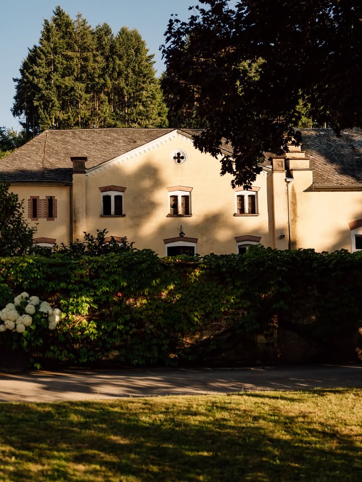 Time slows down where history lives — the mainhouse glowing in summer light, the heart of Karthäuserhof.
