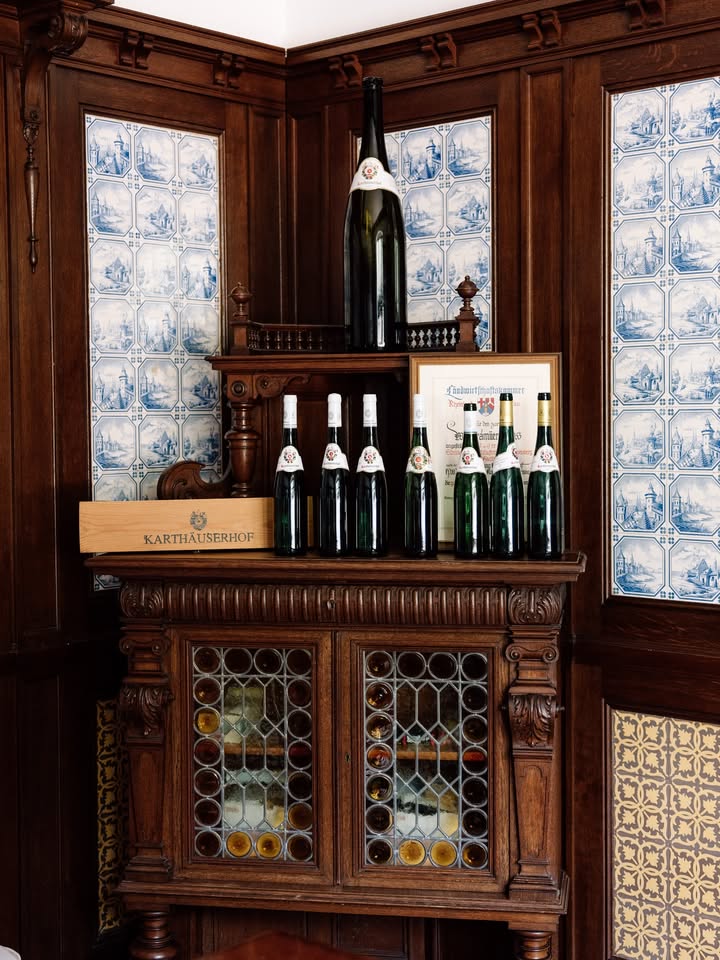 Adorned with precious hand-crafted „Delfter Kacheln“, it remains one of the most treasured spaces at Karthäuserhof – today serving as our tasting room and the heart of our hospitality.