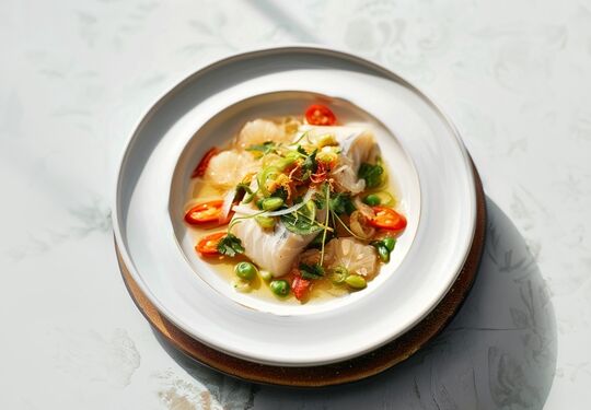 Der Schieferkristall 2021 besticht durch seine lebendige Frische und prägnanten Zitrusaromen, die perfekt zu rohem Hamachi und Sashimi passen. Die gut integrierte Säure und der feine pfeffrige Abgang harmonieren ideal mit gedünstetem Fisch und betonen dessen zarte Aromen.