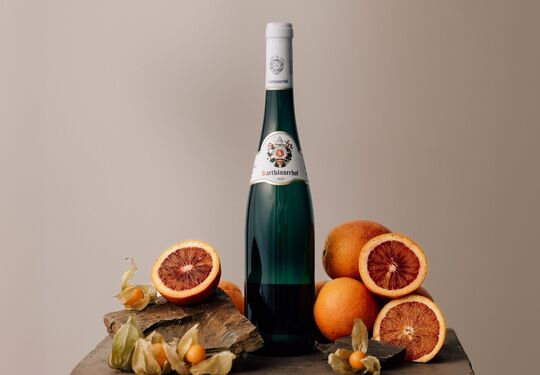 Die Trauben für diesen stammen aus eigenen Lagen in Eitelsbach, Mertesdorf und Waldrach. Der Wein zeigt die typischen Attribute des kühlen Klimas des Ruwertals.